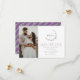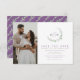 Foliage half circular wreath of purple berries and green leaves watercolor wedding photo save the date card. Edit this save the date card with your own names and wedding date and your own photo. Other matching items and colour options are available. Original hand watercolor painting and design by Sarah Trett for www.mylittleedenweddings.com