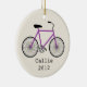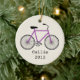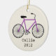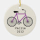 An ornament featuring an illustration of a purple bicycle. Personalise with your name under bike.