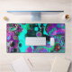 Pretty pour painting effect fluid art with teal, black and purple colourful desk mat.