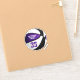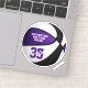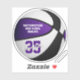 This custom basketball sticker features the realistic image of a basketball that has alternating purple, white and black recolored panels, upon which you can personalise the athlete's name and jersey number plus team name - by katz_d_zynes