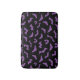 Pastel goth purple flying bats on a black background.