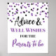 Advice and well wishes for the parents to be sign for baby shower in a purple and black confetti pattern.