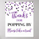 Thanks for popping by popcorn bar sign for baby shower, bridal shower, birthday party or wedding in a purple and black confetti pattern.