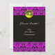 PURPLE BLACK DAMASK MONOGRAM, yellow topaz Invitation