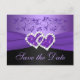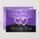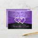 This purple and black floral save the date post card has a FAUX ribbon and a FAUX glitter and diamond joined hearts jewel brooch on it. It matches the wedding invitation shown below. If you require any other matching items in this design, please email your request to niteowlstudio@gmail.com.