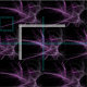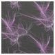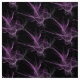 Fabric with a tiled artwork of a purple and black kaleidoscope or fractal design or pattern.