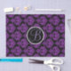 Purple & Black Glam Damask Monogram Letter Initial Tissue Paper