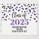 Graduation party custom champagne bottle labels class of 2025 with purple and black glitter pattern confetti.