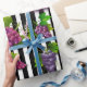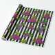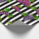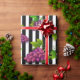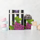 A beautiful repeating pattern of bunches of grapes illustrations set against a vertically striped background that has a background colour of your choice.
