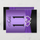 This purple and black table number postcard with a FAUX ribbon and diamond and glitter joined hearts brooch matches the wedding invitation shown below. You must change the number 11 to each number that you need, add it to your cart, and then come back and repeat the process with each number that you need. Quantity discounts may apply once you add all the items to your cart. If you have any questions, contact niteowlstudio@gmail.com.