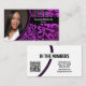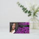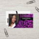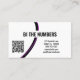 A purple and black numbers background on this design features a photo placeholder on the left with template name on the right. The back includes a coordinated design and colours with text fields for the business name and details. Replace the placeholder photo with your vertical format photograph and your link for the QR Code. Use the QR code to send potential customers to your website, referrals, photographs or another business orientated page. Fill in the template fields or edit using the design tool to select a font style, size, and colour you like. The placeholder photo is courtesy pixabay.com.
