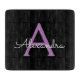 Black and Purple Simple Script Monogram Name Cutting Board. This makes the perfect graduation, birthday, wedding, bridal shower, anniversary, baby shower or bachelorette party gift for someone that loves glam luxury and chic styles.