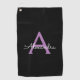 Black and Purple Monogram Name Golf Towel. This makes the perfect sweet 16 birthday, wedding, bridal shower, anniversary, baby shower or bachelorette party gift for someone that loves glam luxury and chic styles.