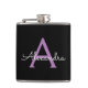 Purple and Black Monogram Add Your Own Name Party Flask. This makes the perfect sweet 16 birthday, wedding, bridal shower, anniversary, baby shower or bachelorette party gift for someone that loves glam luxury and chic styles.