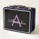 Purple Black Script Girly Monogram Name Metal Lunch Box