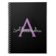 Black and Purple Simple Script Monogram Name Spiral Notebook Planner. This makes the perfect sweet 16 birthday, wedding, bridal shower, anniversary, baby shower or bachelorette party gift for someone that loves glam luxury and chic styles.