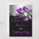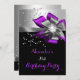 Birthday Party Purple Magenta Pink Black Grey Silver Bow, Diamond pearl Jewel Invite. Elegant. Zizzago. Customise with your own details and age. Template for Sweet 16, 16th, Quinceanera 15th, 18th, 20th, 21st, 30th, 40th, 50th, 60th, 70th, 80th, 90, 100th, Fabulous product for adult Women, Teen Girls, Zizzago created this design PLEASE NOTE all flat images! They Do NOT have real Glitter, Diamonds Jewels or real Bows!!