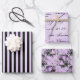 PURPLE BLACK SILVER FLOWERS & PATTERNS WRAPPING PAPER SHEET