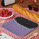 Purple, & black stripes and damask Print Tiffany’s inspired Paper plate..