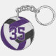 This sporty volleyball themed keychain for boys or girls features a realistic looking purple, black and white volleyball upon which you can customise the player's name, jersey number and court position, plus school or club name and mascot name in a varsity letter style font - by katz_d_zynes