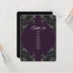 Elegant dark grey floral with dark purple background wedding table escort seating chart cards are lovely for a gothic wedding look with a black backside. The flowers adorn the corners for an elegant, modern and sophisticated look.