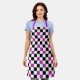 Purple Black White Chequered Pattern Design Apron