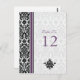 Use the personalise option to change the table number on these elegant eggplant purple, black and white damask floral wedding or other special occasion table cards. Please NOTE: You MUST change the table number on each card and add one of each number to your cart. If you want to do more extensive changes including changing the font, font colour, or font size use the customise option.