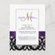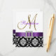 Sophisticated elegance is conveyed by this beautiful wedding reception invitation design. A black and white floral damask pattern serves as a background for a photo effect of the Metallic Gold Initial M and a purple satin ribbon and diamond brooch ALL PRINTED on A FLAT CARD. A perfect way to invite your guests to your wedding reception. Contemporary, yet classic damask pattern with a design which allows you to personalise the front with your names or the word "reception" and the back is free to add your customised wedding reception invitation text. Wedding Reception Invitation is set for monogram initial "M". For other letters or colours of ribbon or damask, please contact designer at luxuryweddinginvitations@gmail.com. Layout Design by Elke Clarke©. Graphics licensed. Also, choose from a variety of fonts and beautiful papers to make your wedding invitations PERFECT!