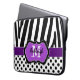 This 15" chic and trendy personalised purple, black, and white zebra stripes and polka dots laptop sleeve has text boxes for you to add your name and monogram. ****PLEASE email me if you want a smaller size one made up, as selecting it on your own will cause the design and text boxes to slip. If you need help customising this with your own info, please email niteowlstudio@gmail.com for help.