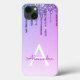 Purple Bling Ombre Sparkle and Faux Dripping Glitter Girly Modern Monogram First Name and Initial Smart Phone Case. Please contact the designer for matching items