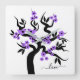 Purple blossoms and love birds black sakura cherry tree wall clock. It features a black sakura tree with purple flowers with black hearts in the centre and a pair of love birds. The word "Love" is written in a script style font.