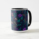 Our Purple Blossoms and Teal Leaves Mug is a high-quality and vibrant addition to your morning coffee routine, embodying a blend of artistry and functionality. The mug showcases a captivating design featuring purple blossoms delicately contrasted against rich teal leaves, all set on a dark blue background. This stunning pattern will surely transport your senses to a magical botanical paradise every time you take a drink.