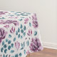 An attractive accent for your table with purple flower blossoms and greenery. A tablecloth for those special occasions.