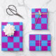 Purple Blue Chequered Check Pattern Wrapping Paper Sheet