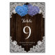 Purple Blue Floral Lace Rustic Wood Table Number