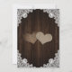 Romantic rustic purple and blue floral wedding save the date card featuring hydrangea hearts against a barn wood background adorned with white floral lace and string lights. Two burlap hearts on a rustic wood background decorated with delicate floral lace at the back.