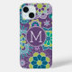 Purple Blue Floral Pattern Custom Monogram Case-Mate iPhone Case