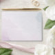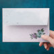 Unique wedding envelope featuring romantic dusty purple and blue flowers and green leaves.