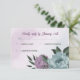 Unique response card RSVP featuring romantic dusty purple and blue flowers and green leaves