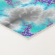Seamless abstract pattern features colourful fractal in blue, purple, and grey.