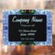 Purple blue hydrangeas bouquets in cobalt blue vases frame the perfectly placed space for your custom information that will make a beautiful unforgettable statement for your business or company.