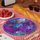 Purple, Blue Modern Abstract Fluid Art Marble Cell Paper Plate
