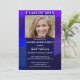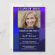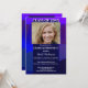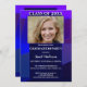 Graduation party invitation featuring your own photo on a purple blue neon geometric design background.