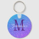 Purple Blue Ombre Glitter Sparkles Monogram Name Key Ring