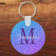 Purple Blue Ombre Glitter Sparkles Monogram Name Keychain