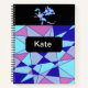 This simple notebook has an abstract triangle pattern that features purple, blue, and pink colors. With a dragon! Its super simple and easy to edit this notebook and place your own name or what this notebook is for where the word Kate is located.