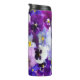 A purple blue white pansies floral thermal tumbler travel mug