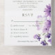 AVAILABLE WITH OR WITHOUT A QR CODE. This design features lavender, white, and purple wild flowers with greenery. Personalised All-In-One invitations are a unique combination of both a beautifully printed custom invitation with an easy to tear off perforated RSVP postcard. And they are so easy to use! You simply fold, then seal the back flap with the three included clear stickers, and mail. And when your guests receive your custom invite, they just tear the perforated RSVP Card off and drop it back in the mail to you!