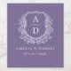 Purple Botanical Crest Modern Monogram Wedding Wine Label