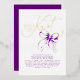 She’s Tying the Knot – Dark Purple & Gold Bow Bridal Shower Foil Invitation. The design is adorned with flowing gold-foil script, delicately sweeping across the top in graceful calligraphy that shimmers like fine jewelry against a clean white backdrop. Beneath the lettering, a hand-painted eggplant-purple watercolor bow unfolds gently - like a ribbon tied around a cherished gift, full of promise and devotion. The soft, airy brushstrokes lend a sense of movement and romance, while the rich purple and warm gold palette evokes passion, elegance, and timeless love. Thoughtfully minimal yet deeply expressive, the design feels intimate, refined, and beautifully feminine.